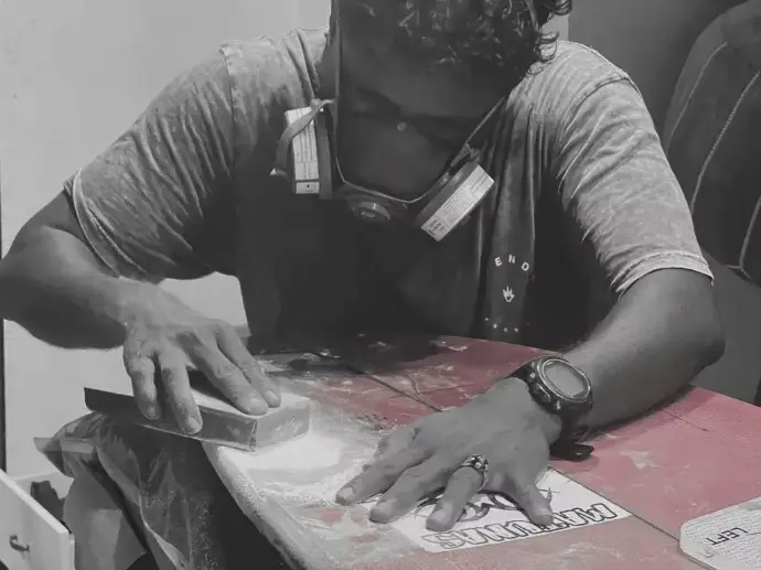 In the Maldives its hard to find proper surfboard repair material and the tools required to fix surfboards. On top of that, given the confined spaces we live in, people are often reluctant to work with fiberglass.